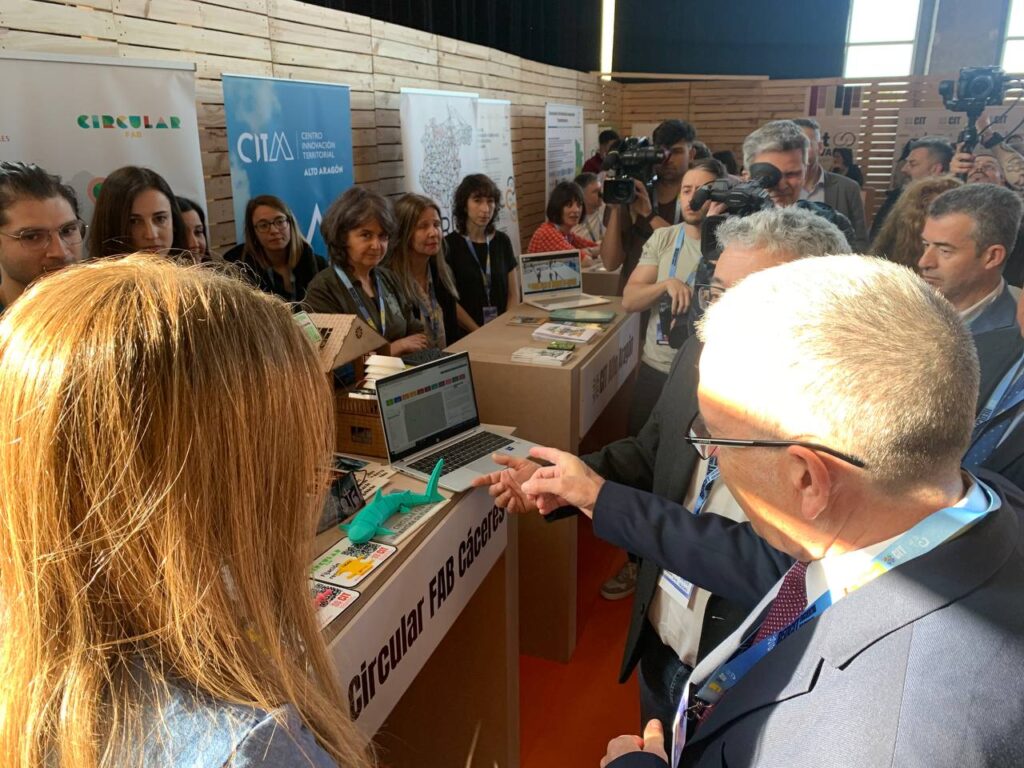 La Red de Centros Circular FAB de la Diputación de Cáceres participó activamente en esta cita clave compartiendo experiencias, proyectos y estrategias. El evento reunió a una treintena de expositores y combinó espacios de debate y actividades abiertas al público. Este evento propició que administraciones públicas, centros de conocimiento, empresas y ciudadanía se encontraran con el fin de crear sinergias y avanzar en la construcción de una estrategia conjunta para la innovación territorial.